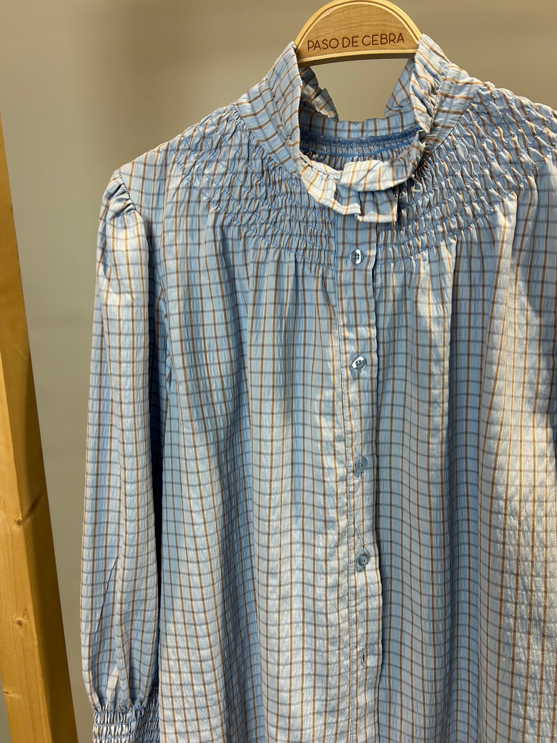 El cuello fruncido añade textura y personalidad, convirtiéndola en la opción ideal tanto para outfits casuales como para conjuntos más formales.