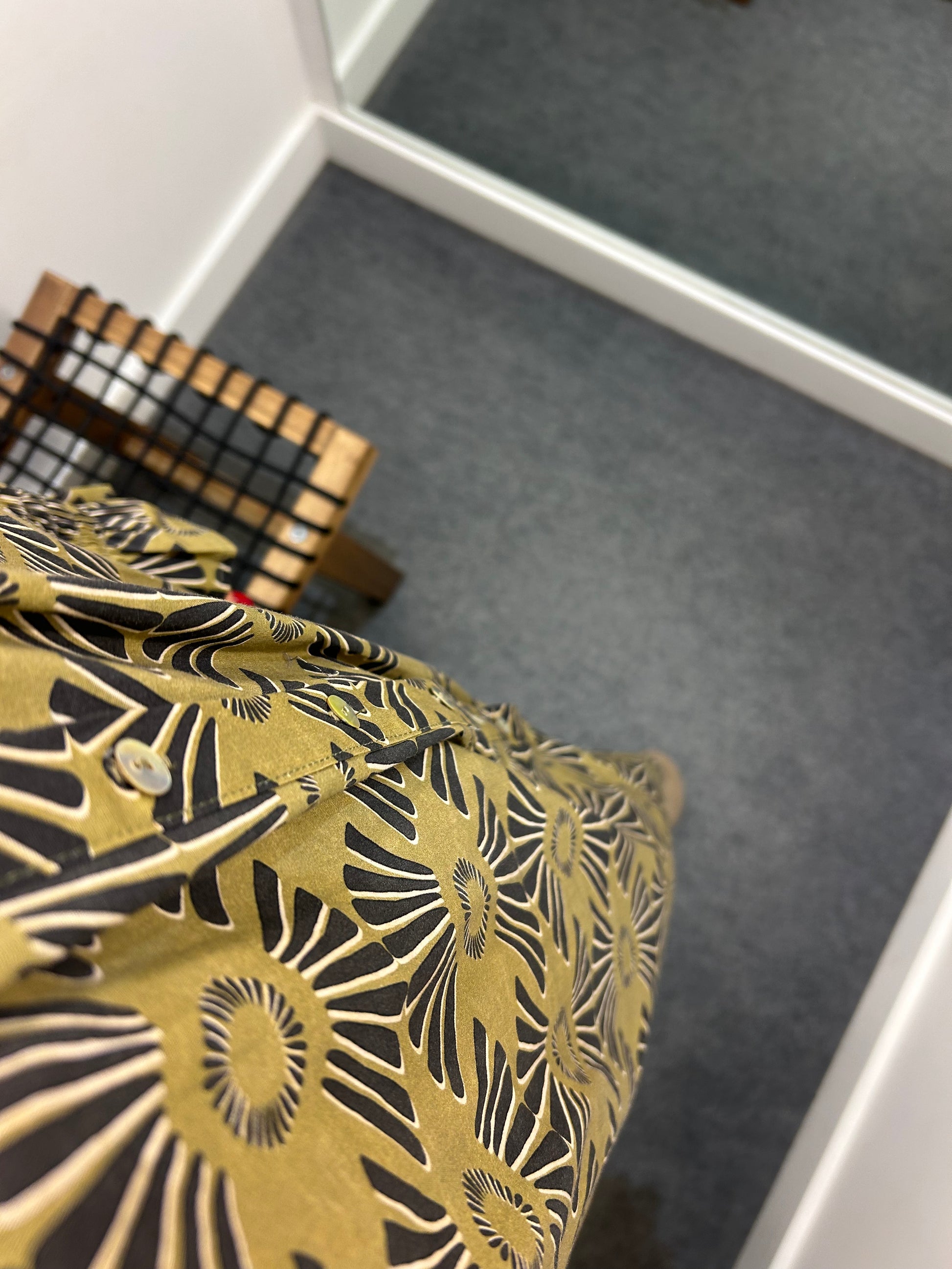 Destaca por su equilibrio entre sofisticación y carácter. Confeccionado en un estampado floral en tonos negros sobre base oliva.